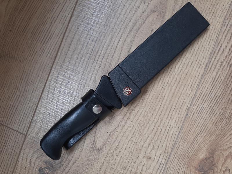 Una muy buena pieza de colección, está usado, se ve en la hoja, la funda por detrás lleva piedra de afilar.