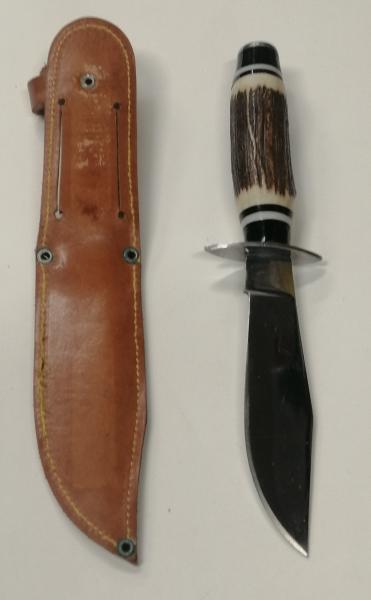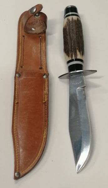 Antiguo cuchillo MUME (Predecesor de Muela) en impecable estado, la funda de cuero marrón tiene un pequeño descosido. Hoja de acero inoxidable de 13 cms marcada y cachas de cuerno. Pido 25 euros. Se entrega en mano en Madrid o envío por NÁCEX 7 euros. 669403324 VENDIDO MUCHAS GRACIAS