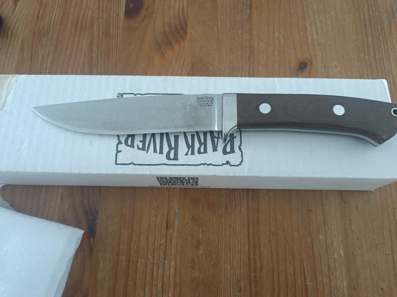Precioso cuchillo de la marca americana bark River se trata del modelo anunciado un cuchillo con un corte expectacular tiene uno 14,5 cm de hoja un mango en micarta Canvas verde y se sirve sin funda de hay el precio 225 euros con envío el cuchillo nunca se ha usado fuera de casa lo he usado para cortar unas frutas