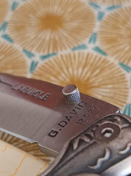 Se vende está pieza de la factoría francesa Arbálete G.David, una pieza muy elegante y de calidad, acero premium 12c27, con empuñadura grabada al relieve con escenas de caza, dispone de seguro Liner Luck, y tetón de apertura diestro.