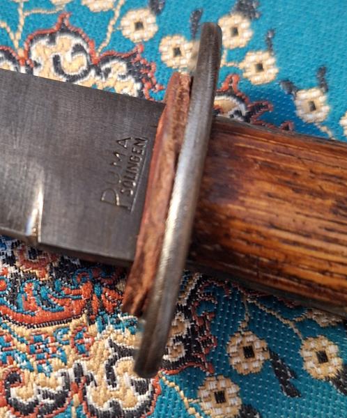 Daga de trinchera original marcada Puma Solingen, alemania WWII, fabricacion temprana, finales de los 30 posiblemente, aun con el mango de madera, estado excepcional de conservacion, ver fotos, aun sin afilar. Precuo 450 Euros, envio peninsular incluido.