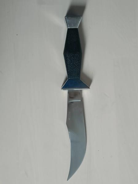 La hoja es curva con punta pronunciada bastante pulida y con alguna señal de uso.