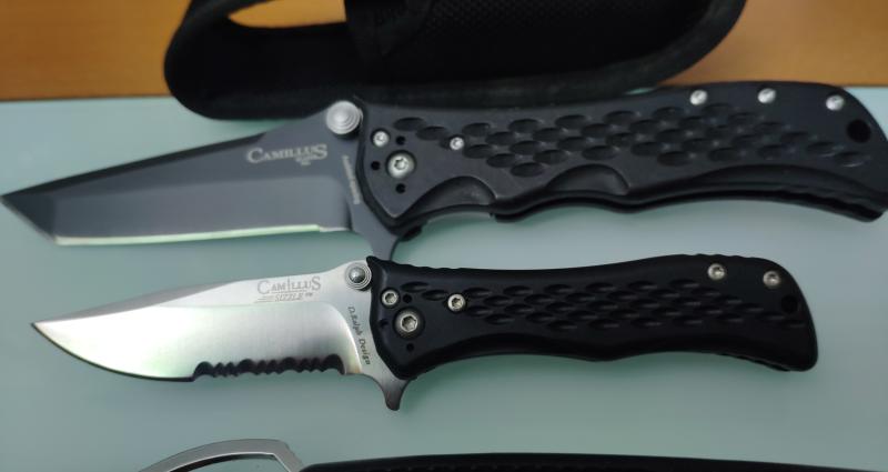 2 navajas marca Camillus,una estilo Tanto con acero 440, 9cm de hoja y la otra hoja mixta de 6,5 cm acero Aux8.