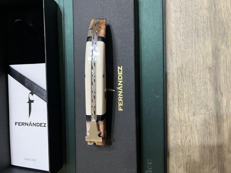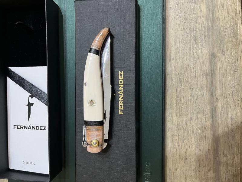 Marfil de mamut ,hueso jirafa y ébano en las cachas…y la hoja en acero inox 440 a espejos ..