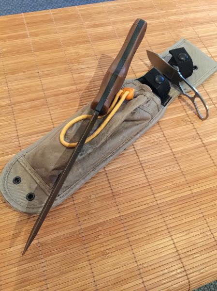 Incluyo dos fotos comparativas del tamaño del KA-BAR POTBELLY (respecto a una bayoneta BUCK M9 PHROBIS III), y algunas con el KA-BAR Monoblock que viene incluido.