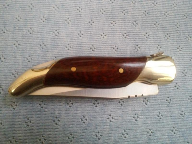 pongo a la venta navaja Castañeda, de lujo, nueva sin usar, fabricada por artesano de Albacete, hoja de acero inox 440, latón y madera. Tiene un ajuste y acabados impresionantes. Precio 75€