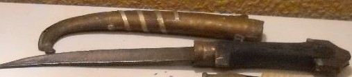Gumia o daga árabe, por los datos que dispongo del vendedor, procedente de Marruecos probablemente 1940-45 o anterior. Funda decorada. 38 centimetros con su funda.