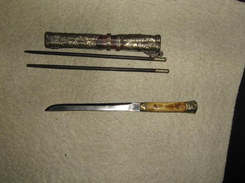 Vendo cuchillo japones con palillos, los Japoneses lo emplean como defensa y para comer, 125 euros,a mi coto 150 euros