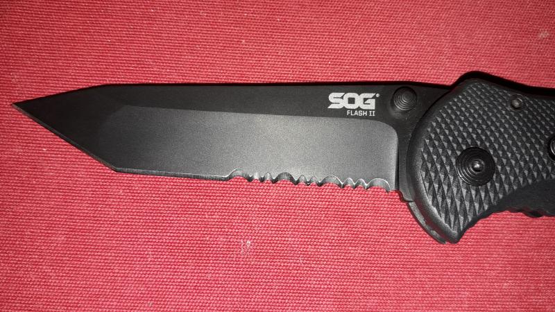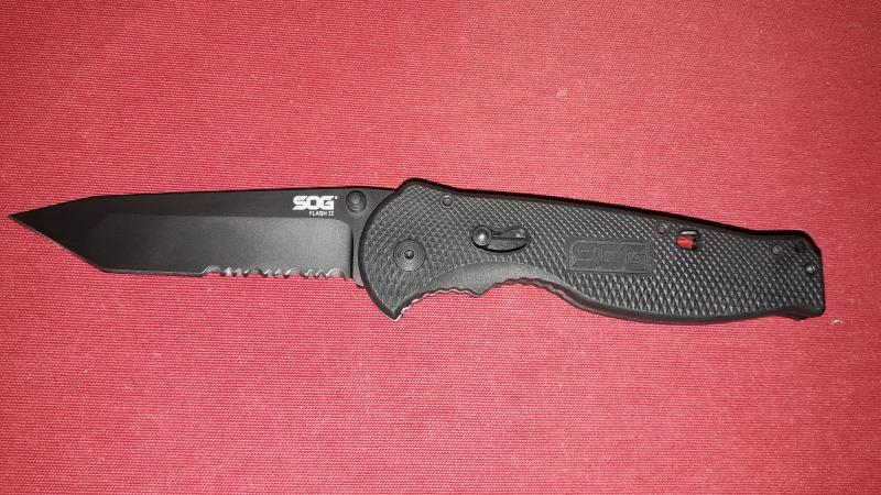 Navaja sog flash 2 tanto hoja mixta nueva sin uso. Tiene una pequeña picada en el clip para el cinto. 40€
