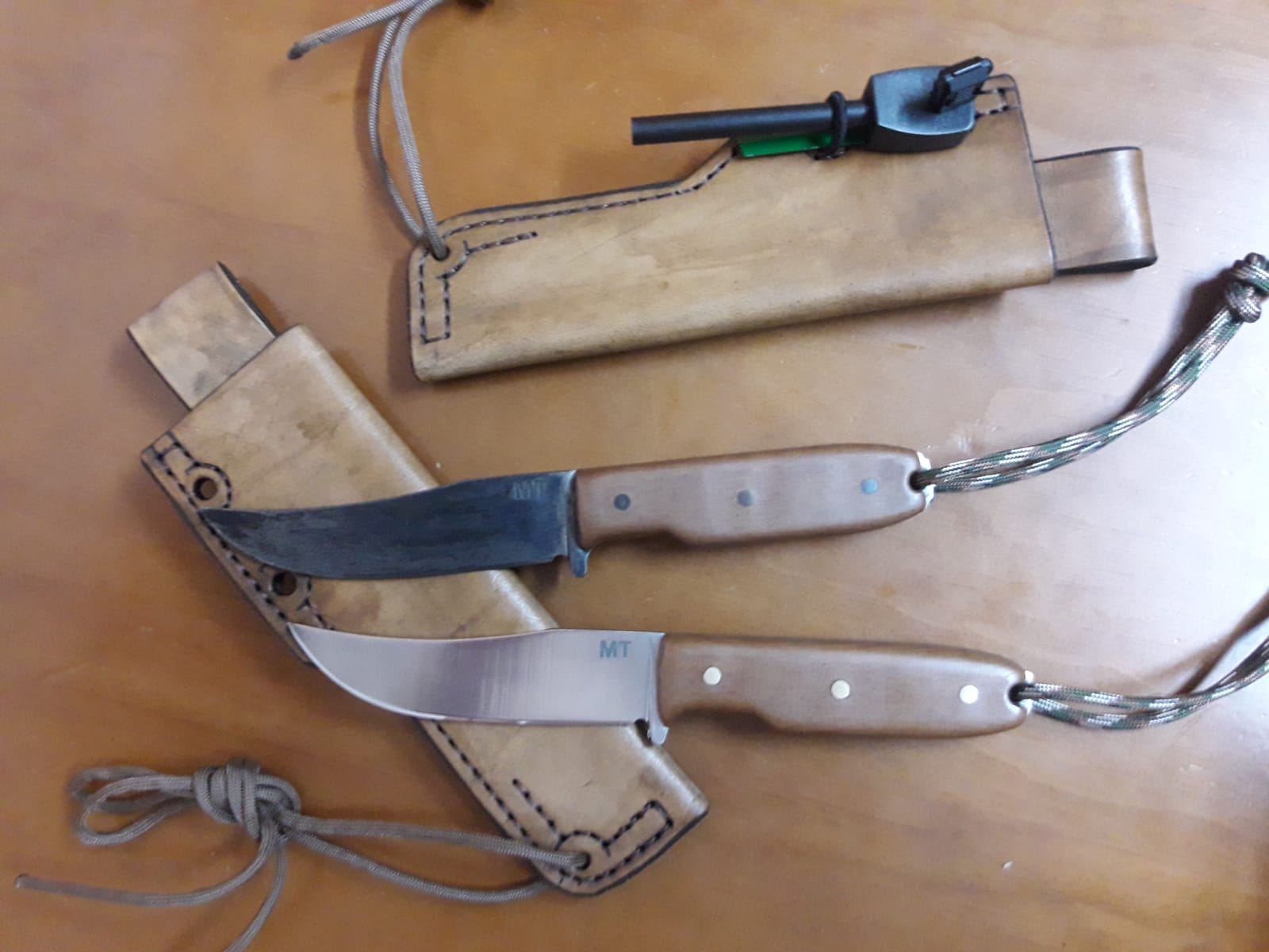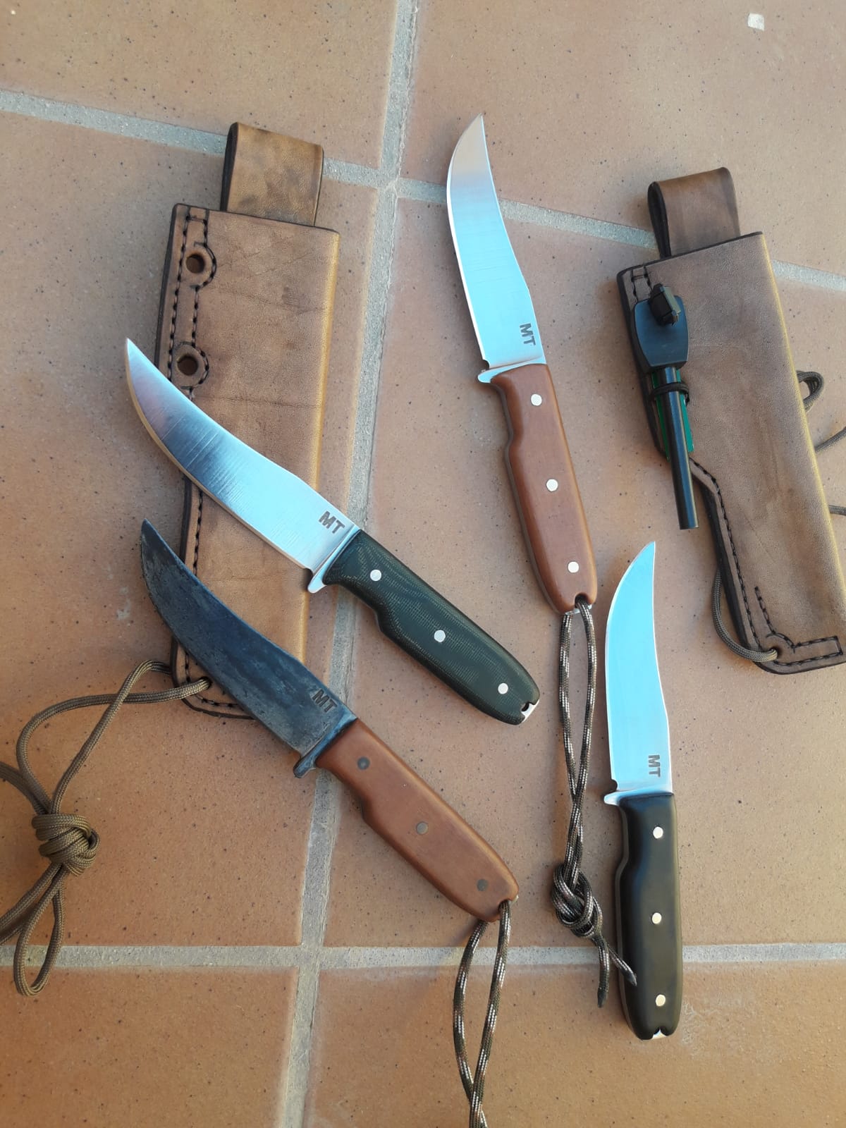 Algunas fotos más, la serie va a tener finalmente 8 cuchillos. Cada unidad se entregará con funda de cuero multiposición, paracord y fire steel con rascador.