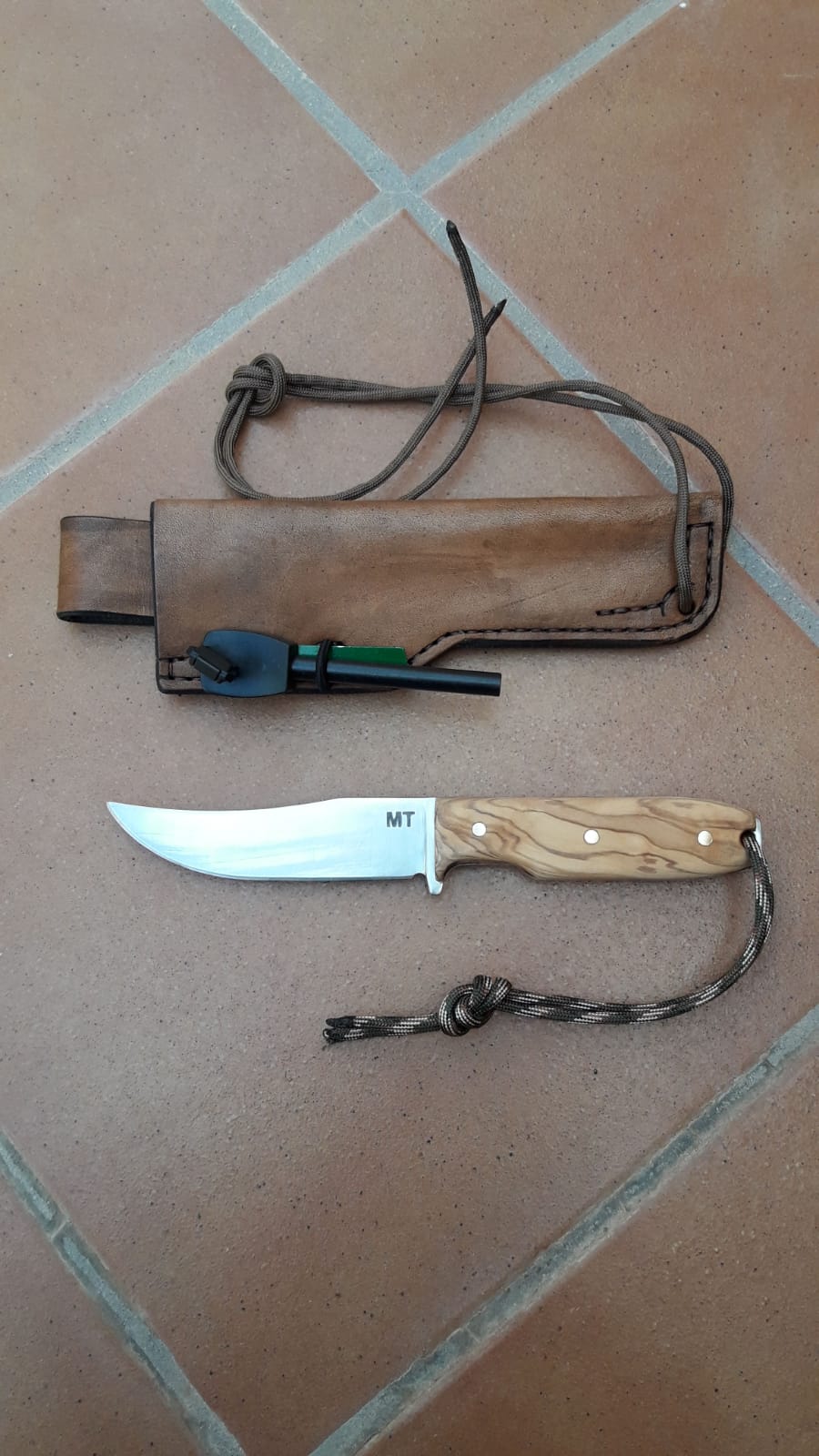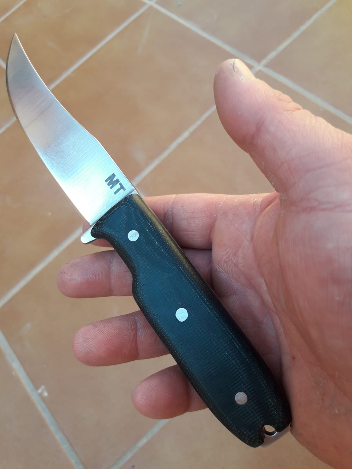 Os presento el nuevo cuchillo MT Alimaña, diseñado por Manuel de la Torre con mi humilde colaboración. Se trata de un modelo de combate, con hoja tipo trailling point de 11 cm., y construcción enteriza. El acero utilizado es Bohler K-110, el cual es el equivalente europeo al Aisi D2. Se trata de un acero ledeburítico al 12 % de cromo con estabilidad dimensional, con muy buena capacidad de corte. El cuchillo se diseñó como herramienta de combate, aunque es también válido para uso general, caza o supervivencia debido a la longitud del filo útil. Se ha realizado una serie inicial de 25 unidades, que se acabarán en varios tipos de micarta y madera estabilizada. La funda de cuero cuenta con provisión para instalar un tec-lok si se desea, y cuenta con una sección de paracord para fijarla a la pierna, y una rabiza del mismo material en el pomo del cuchillo para uso general. El precio final es de 80 euros con envío incluido a la península, más información en el mail jmtg23@live.com, o por mensaje privado. PD: como veis, la fecha del diseño es de 10 de abril de 2019