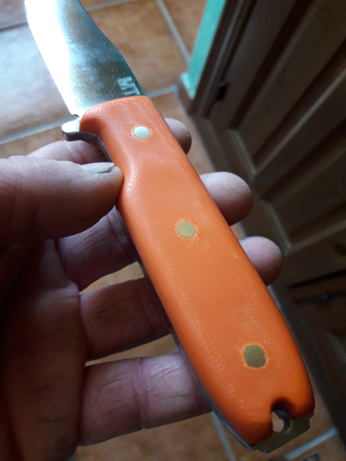 Os pongo algunas fotos más de los cuchillos terminados, de momento dispongo de 4 en micarta negra, verde y marrón.