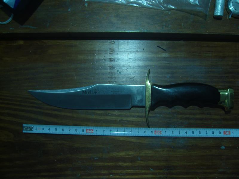 Vendo cuchillo de monte Muela Bowie corto, de calidad excelente, años 80 Largo hoja 17,7 cm Largo total 30,2 cm espesor hoja 4 mm, en perfecto estado usado pero nunca maltratado, de este no encuentro la funda, como nuevo, mejores fotos por whatsapp