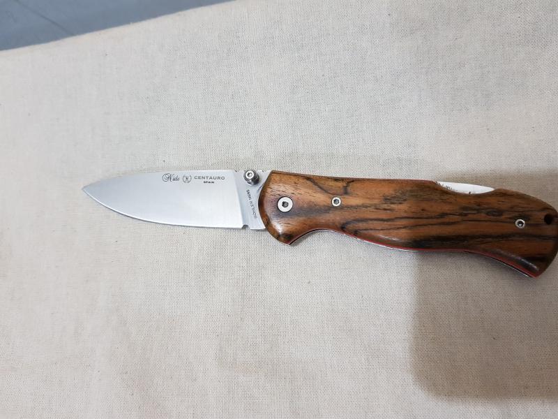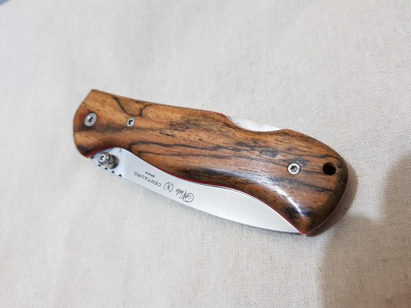Pongo a la venta esta navaja Nieto Centauro sin usar, mago de bocote pulido, diseñada por Manuel de la torre, hoja de acero Böhler N-695, con tetón de apertura ambidiesta, sujeción con tornillos allen,separadores de fibra rojos, muelles y forros pulidos a espejo, muelle trabajado, sistema de cierre de bloqueo, tamaño de hoja 7,8 cm, tamaño total 18,5 cm