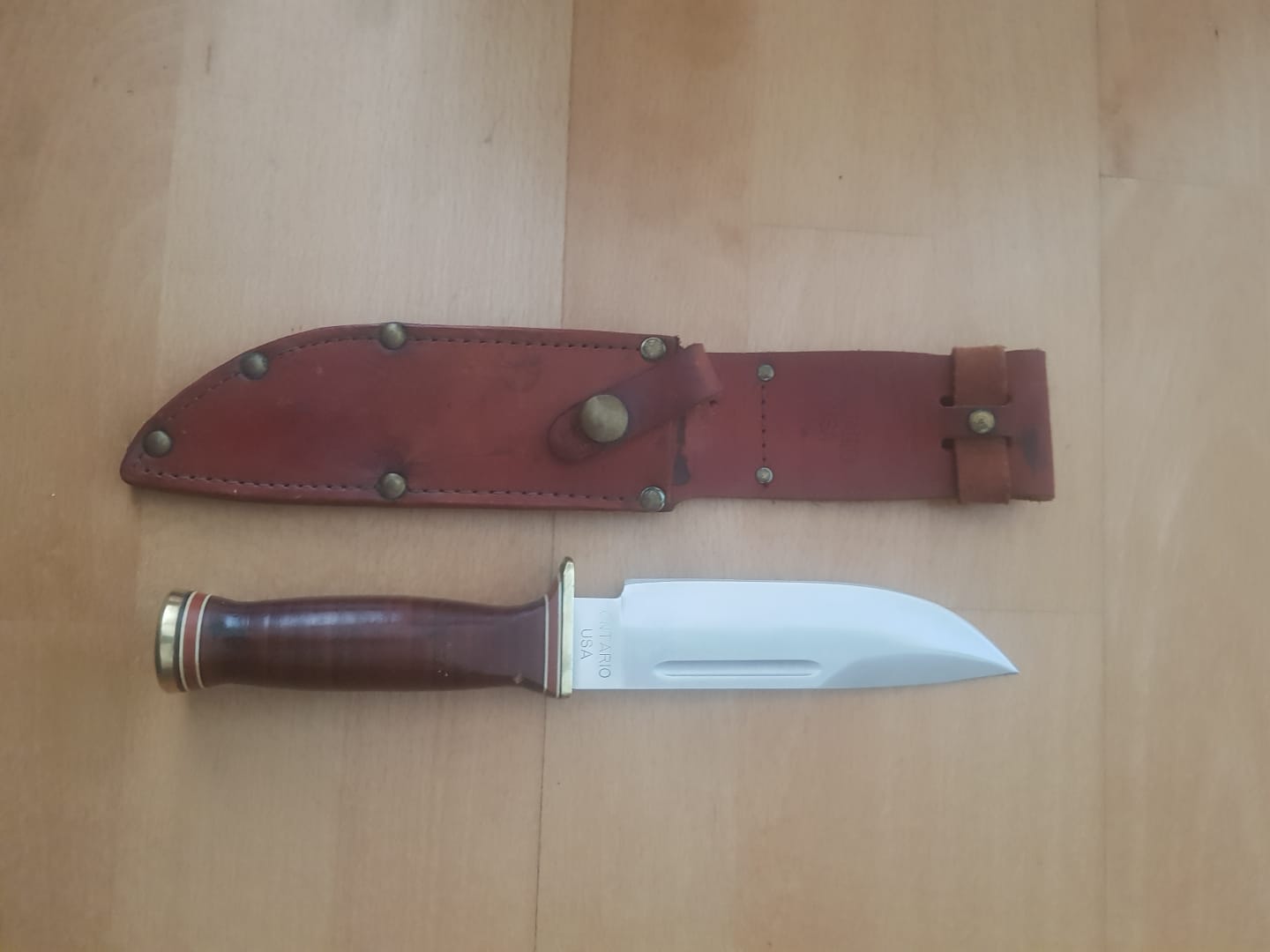 Se vende precioso cuchillo ontario modelo quartermaster una belleza en mango de cuero guarda de latón acero 440 un cuchillo mítico su estado es perfecto también escucho oferta de cambio su precio 100 envío incluido