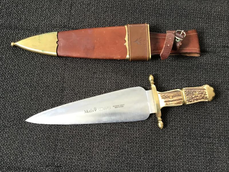 Vendo cuchillo de remate Muela Covarsi, con mango de asta de ciervo, y funda de lujo, usado alguna vez, filo que afeita .