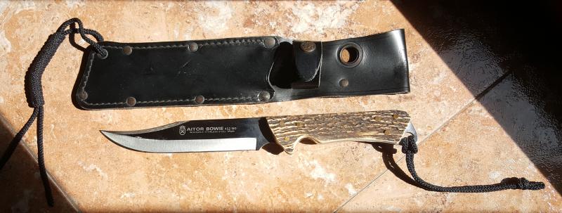 Aitor Bowie 250 euros, empuñadura de cuerno, hoja de acero inoxidable de 17 cm de largo. Largo total: 305 mm. Espesor de hoja: 4,2 mm.