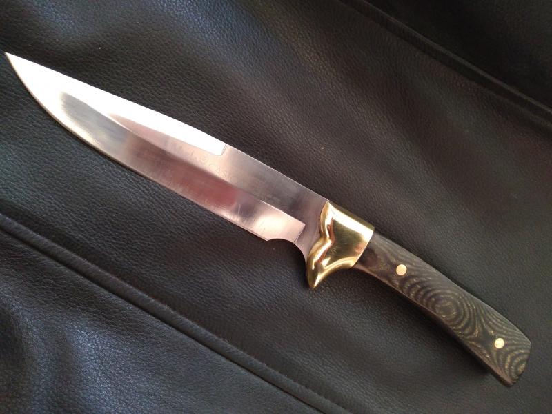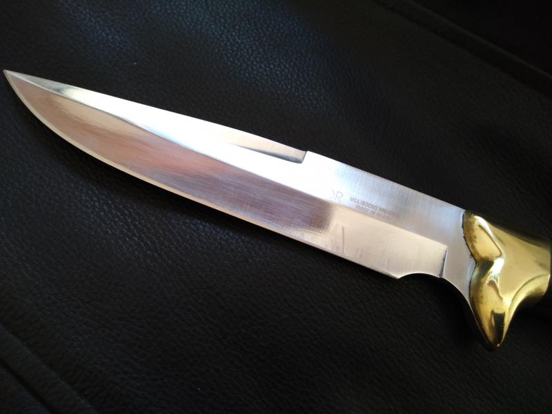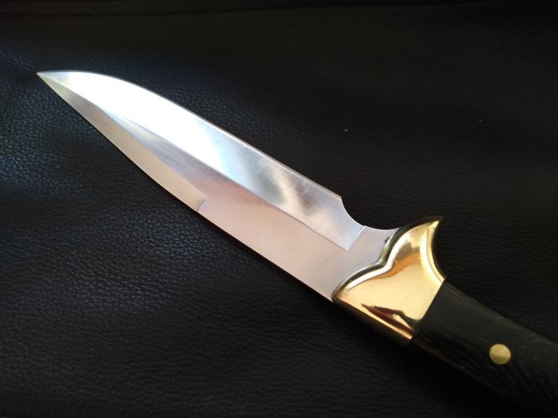 Ha tenido uso y algún afilado, pero está en buen estado, cuidado y con el filo perfecto, sin mellas. Virola de latón y empuñadura con cachas de estamina negra, impecables.
