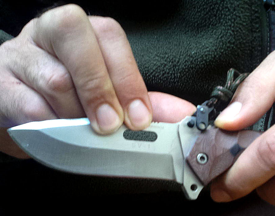 Me gusta el sistema de bloqueo de la hoja, pero ¿no debiera estar en el lado del filo para bloquearla?
