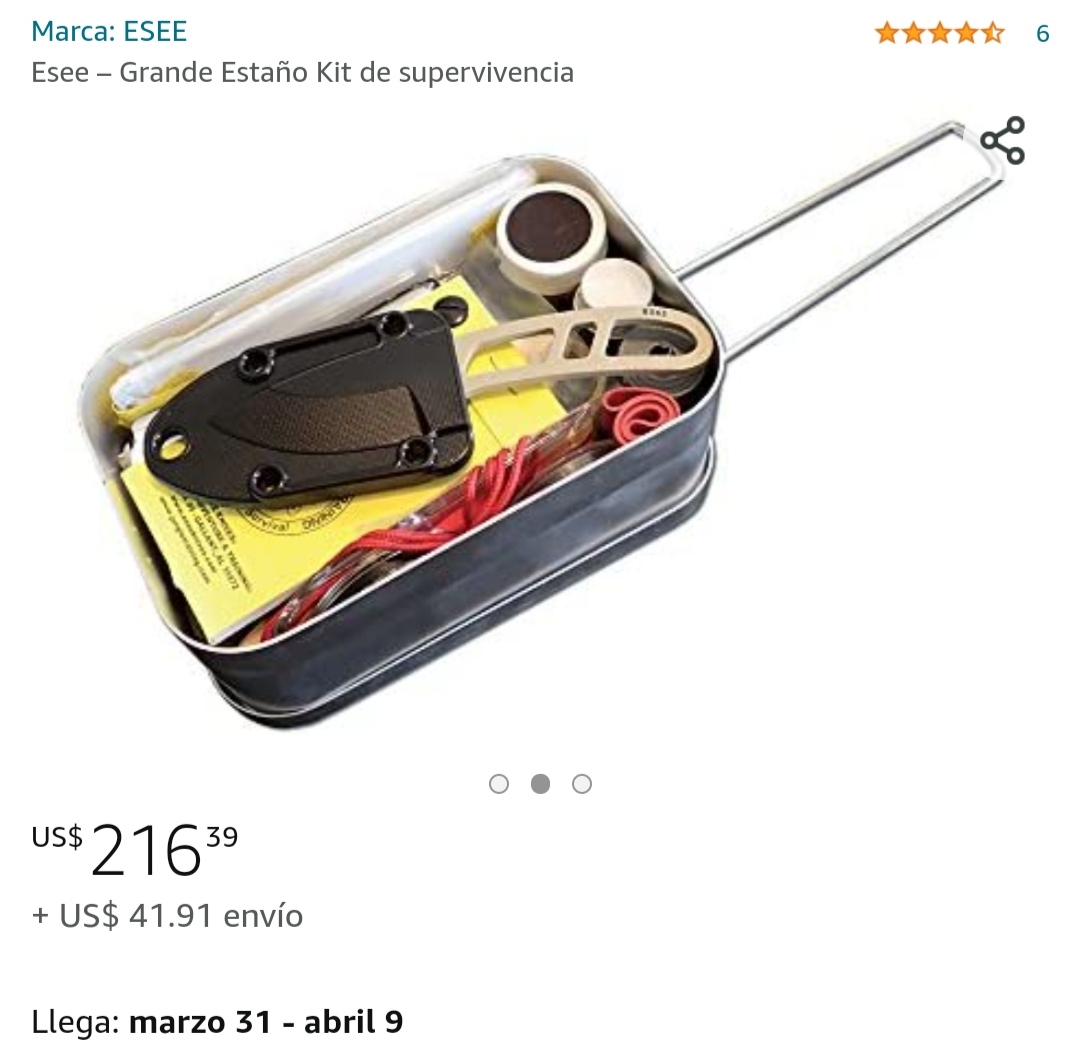 Hola compañeros, vendo este kit esee lo pongo en esta sección ya que en kit va el cuchillo esee izula incluido de serie (si el administrador lo cree conveniente lo muevo a la sección que el crea que corresponde) , esta nuevo sin ningún uso de ningun tipo, lo único que le falta es la caja de cartón blanca con el logotipo en el que venía empaquetado (los niños) no pongo fotos reales por que lo tengo en casa de un familiar guardado, en cuanto pueda me hacerco y le hago fotos.
