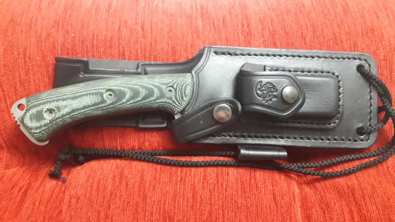 Cuchillo j&v hispanus con funda de piel , cachas micarta verde y separadores rojos. Nuevo con caja original. Esta en Valencia y su precio 60€ envio incluido.