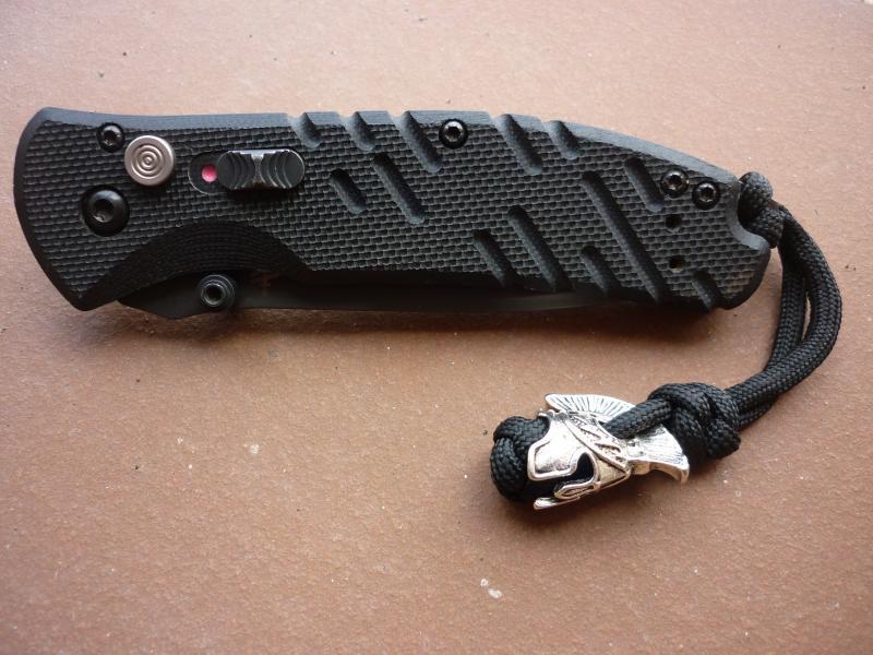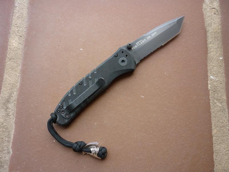 DATOS TECNICOS : Construido en Portland, OREGON, hoja de acero S30V, parcialmente serrada estilo Tanto, recubrimiento de óxido negro para resistencia a la corrosión, cachas en G-10, pomo con orificio para cordón, apertura automática, bloqueo de inmersión y pulsador de seguridad, clip de bolsillo de tres posiciones.