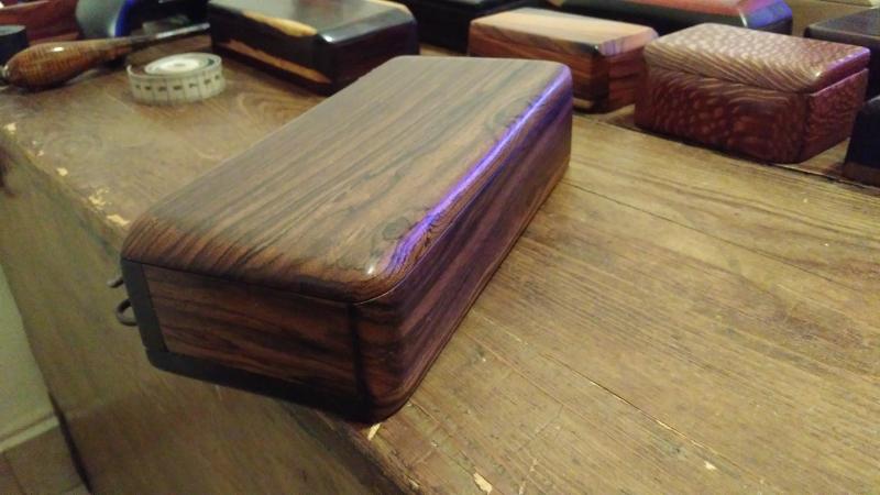 Vendo 4 estuches de madera .. El naranja de pernambuco mejicano ,el marrón de ziricote , el marrón grandote de bocote y el negro y rojo ébano con cocobolo....