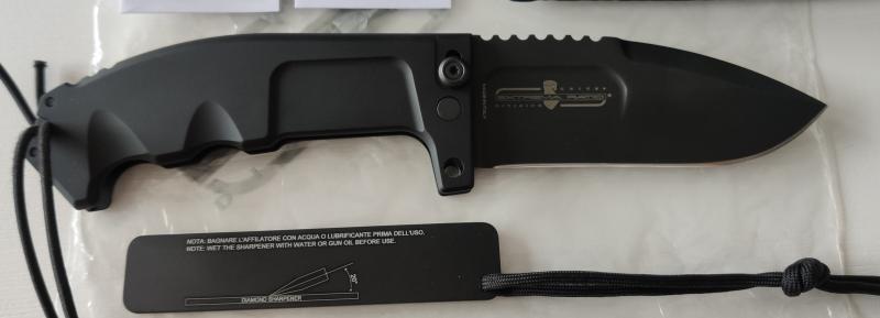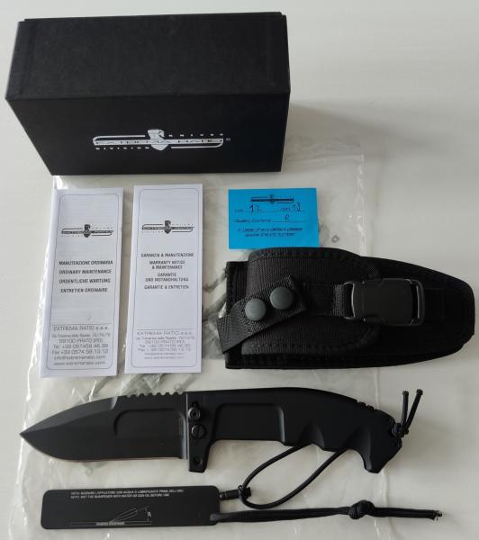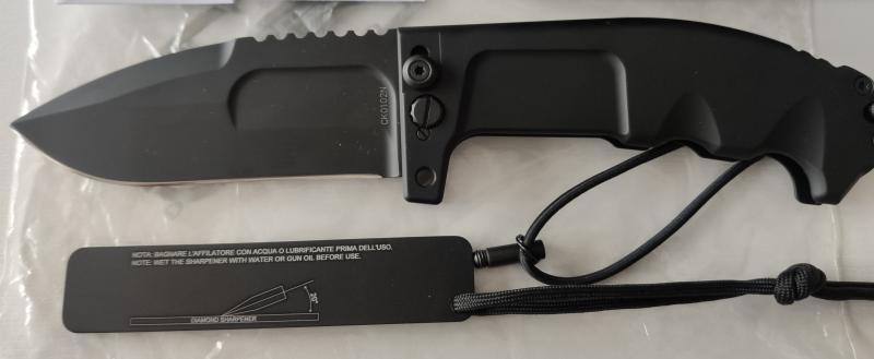 Navaja Extrema Ratio 2. Comprada en 2018 y nunca usada, no ha cortado ni papel. Viene con el libro de instrucciones, garantia, afilador de diamante y funda multiposición, para portarla abierta o cerrada.