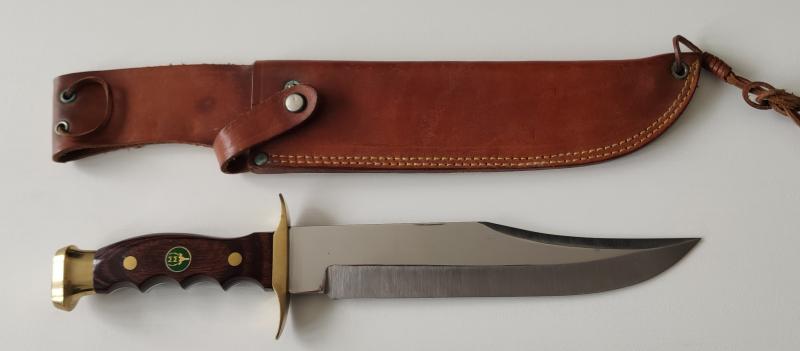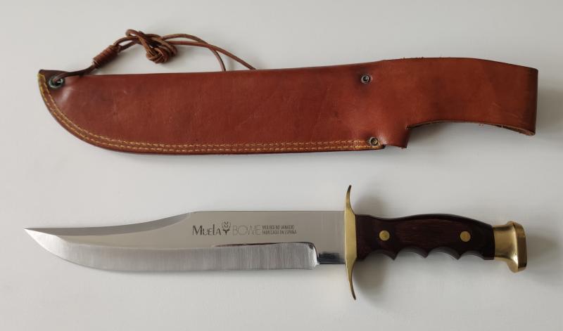 Muela bowie antiguo. Hoja de 24cm y 37 cm en total (aprox). Tanto en cuchillo como la funda estan sin uso. Salen de colección.
