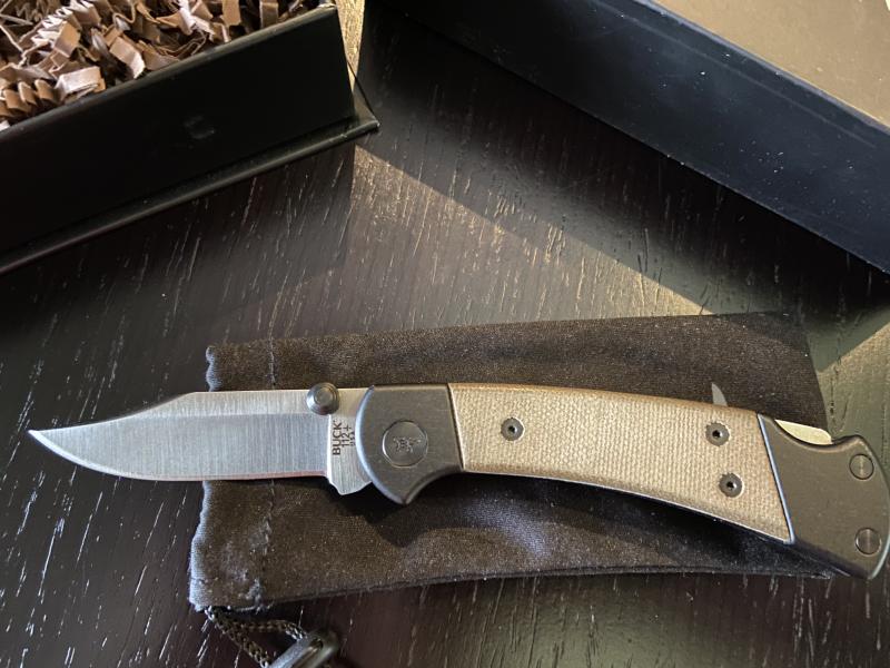 Vuelve a la venta està Buck Ranger Sport con cachas en micarta canvas y acero S30V. Sin ningún uso y con embalaje original.