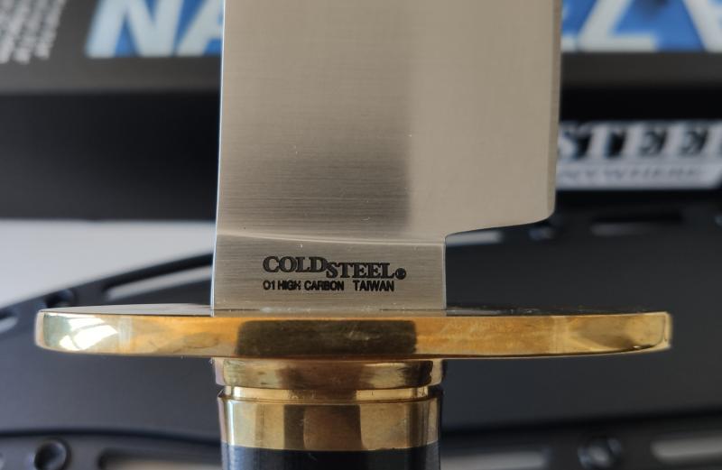 Los de Cold Steel tienen estas cosas. Diseñan un cuchillo de estilo completamente historicista con ese puño y guarnición decimonónicas, y luego le plantan una funda sintética de un cuchillo de combate contemporáneo. Si no le dan algún toque "moderno" a sus productos, revientan.