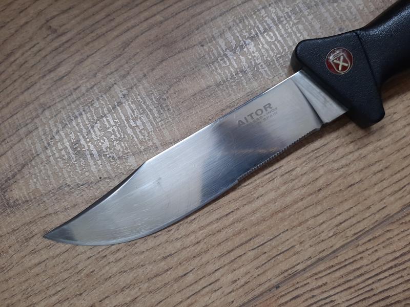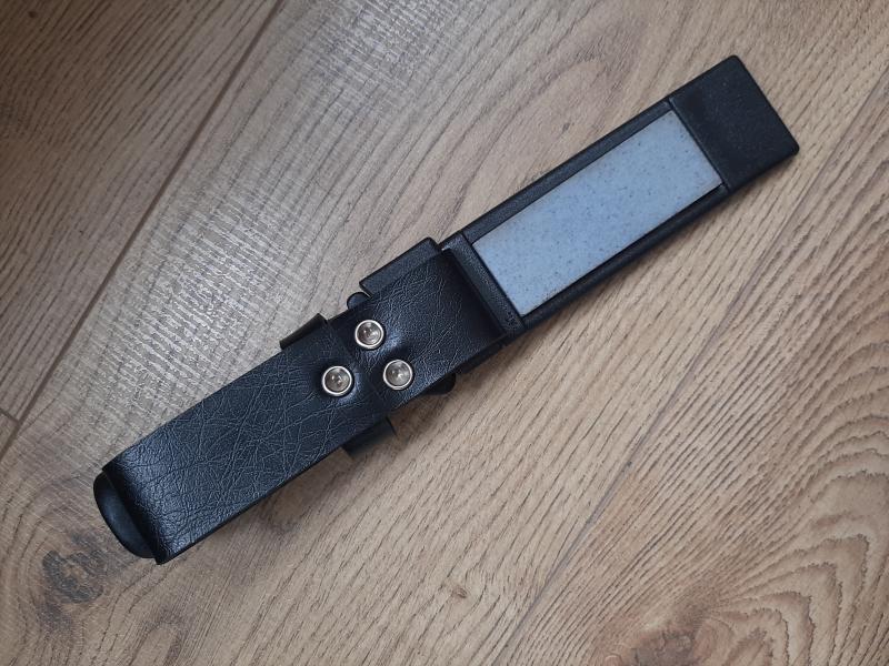 Una muy buena pieza de colección, está usado, se ve en la hoja, la funda por detrás lleva piedra de afilar.