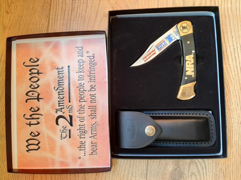 Navaja BUCK modelo 110, conmemorativa de la NRA (Asociación Nacinal del Rifle).