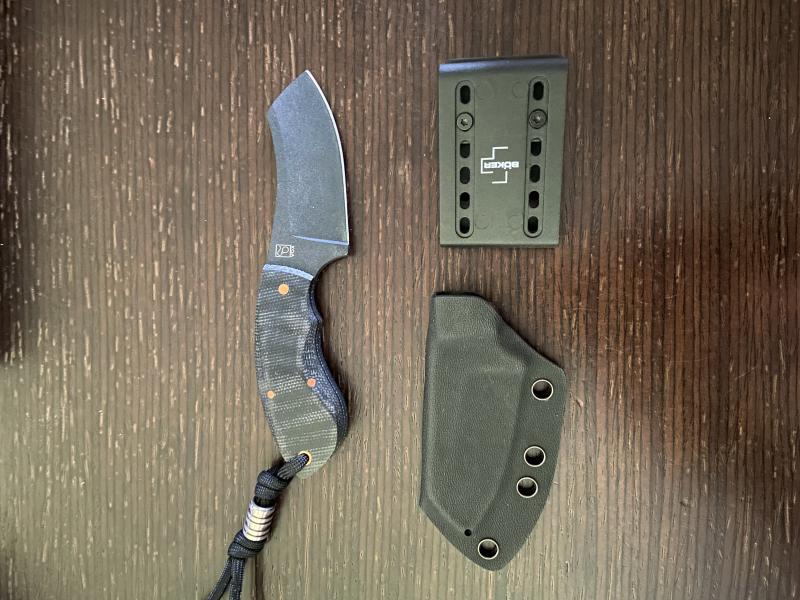 En venta este mini cuchillo de Boker en acero D2 con acabado en negro, cachas en micarta negra y cobre con clip de cinturón. Con su embalaje original.