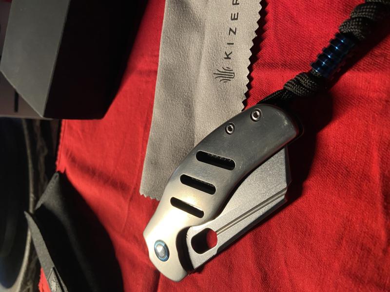 Caja, funda y tornillería de recambio de origen. Rabiza en paracord y beat de titanio azul.