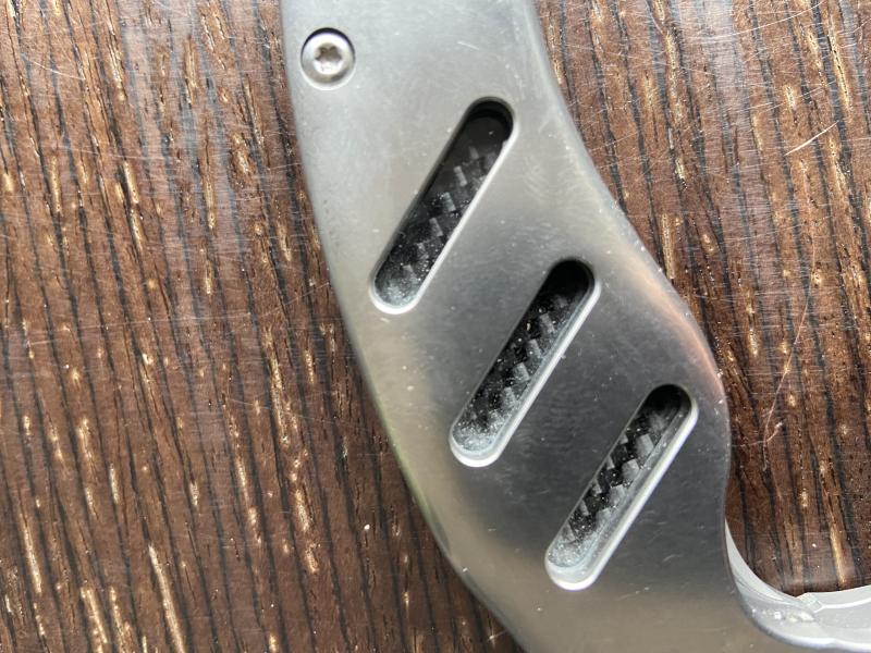 Satinado de la cacha delantera y clip. Lámina de carbono en el interior de dicha cacha, totalmente removible. Por lo demás, “manoseada” pero no usada