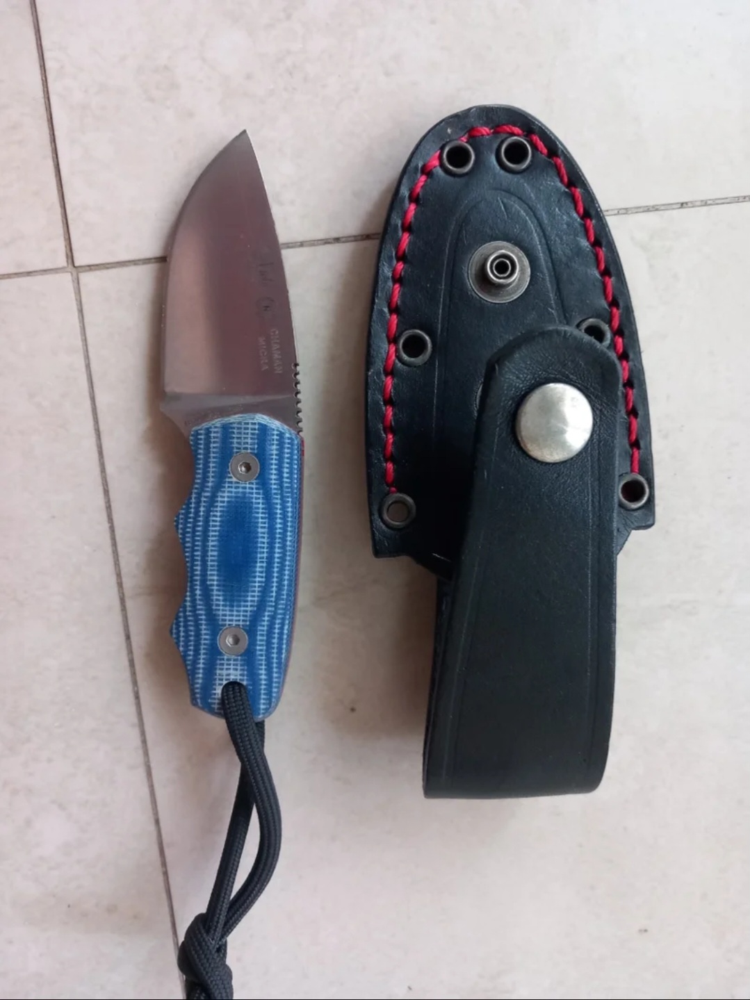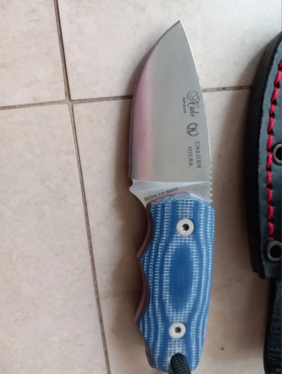 -Nieto Chaman micra, ideal para llevar en cuello. Acero Böhler ER N695. Se incluye una funda de cuero.