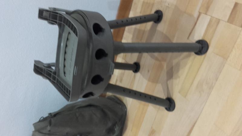 Usada 2 dias. Portatil y ligera, facil transporte con su funda original. Gira 360* permitiendo la mejor posicion de disparo. se adapta a todos los terrenos con sus patas regulables. Asiento muy comodo, perfecto para estar muchas horas. Es perfecta para esperas aguardos monteria gancho caza con reclamo tiradas de palomas, es muy silenciosa.