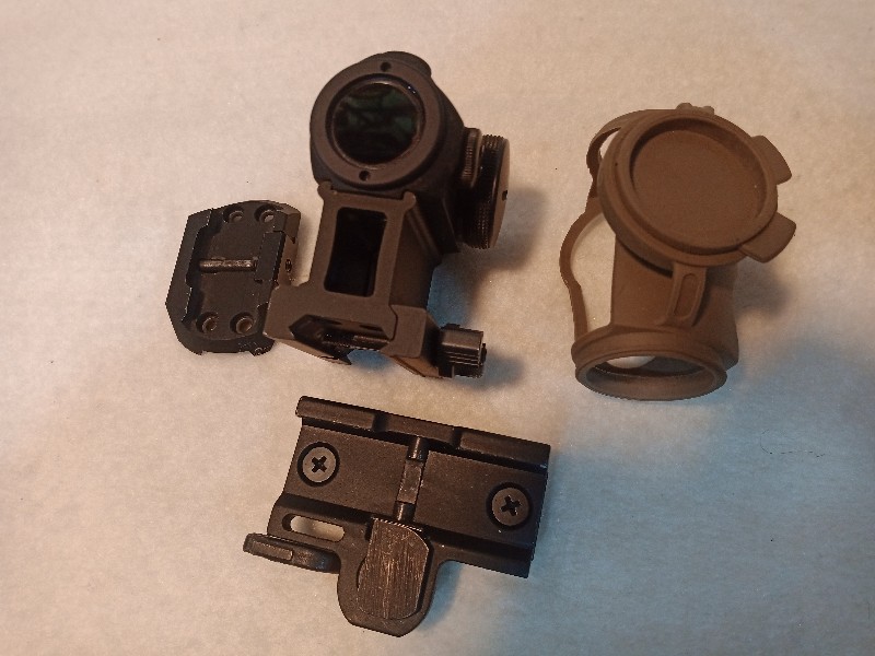 AIMPOINT H1, con los accesorios que salen en las fotos, funciona perfectamente. 350 Euros