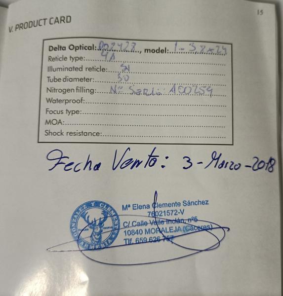 El visor tiene garantía de 10 años hasta 2028, libro garantía sellado.