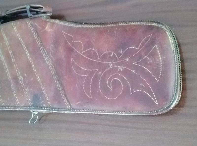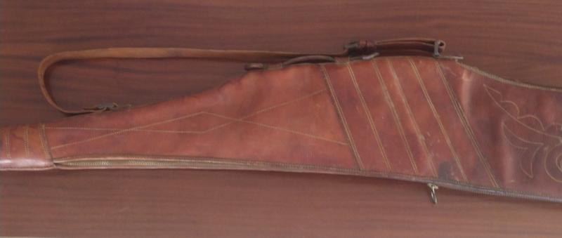 Vendo funda de cuero para rifle o carabina sin visor. Largo de 110 cm. Con cremallera, asa y correa de hombro. 60 más portes.