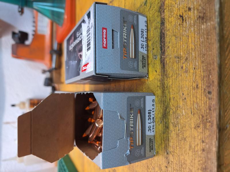 Vendo dos cajas de puntas, norma tipstrike del 308, 170 gr, una sin estrenar y la otra con 75 unidades, total 175 puntas