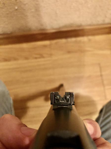 Es el modelo que lleva varias hileras de agujeros en boca para compensar la elevación del arma tras el disparo. Dispone de punto y alza regulable abatible. Pintado en gris oscuro mate por el anterior dueño. Para jabalí me comentó que era una auténtica maravilla. Vendo porque no le doy uso.