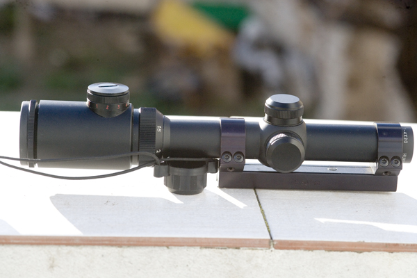 Vendo visor de batida marca Akko Hunter 1-4x20, con monturas de carril fijas B-Square.