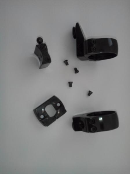 Vendo bases y anillas apel(appel, apell) para rifle Santa Barbará, Voere o similar, en perfecto estado, la base delantera tiene una distancia entre taladros de 22m/m. y la trasera de 13m/m. Las anillas son de 30m/m. Precio de las bases 120€. Anillas VENDIDAS.