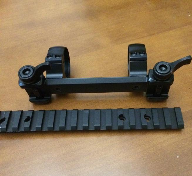 Monturas Recknagel desmontables, como se ve en la foto son para carril de 21 mm tipo weaver y también son válidas para Merkel Helix con anillas de 30 mm y visores de campana hasta de 56cm.