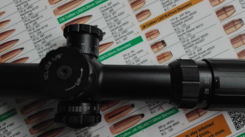 -Click value de 1/8 M.O.A. , ajustes corrección vertical y elevación totalmente expuestos