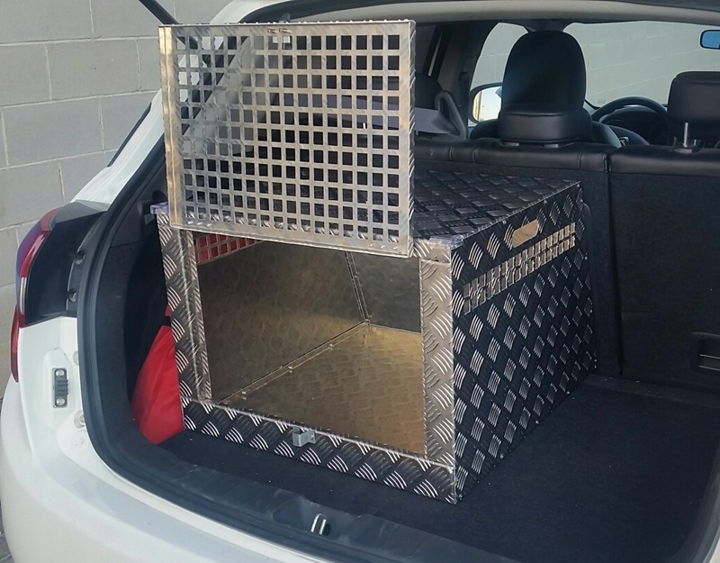 Transportin de aluminio muy ligero y de facil manejo, ideal para portar entre dos y tres perros tamaño beagle, breton, teckel, podenco andaluz etc. . Medidas: largo 61cm x alto 44cm x fondo 65cm Precio:190€