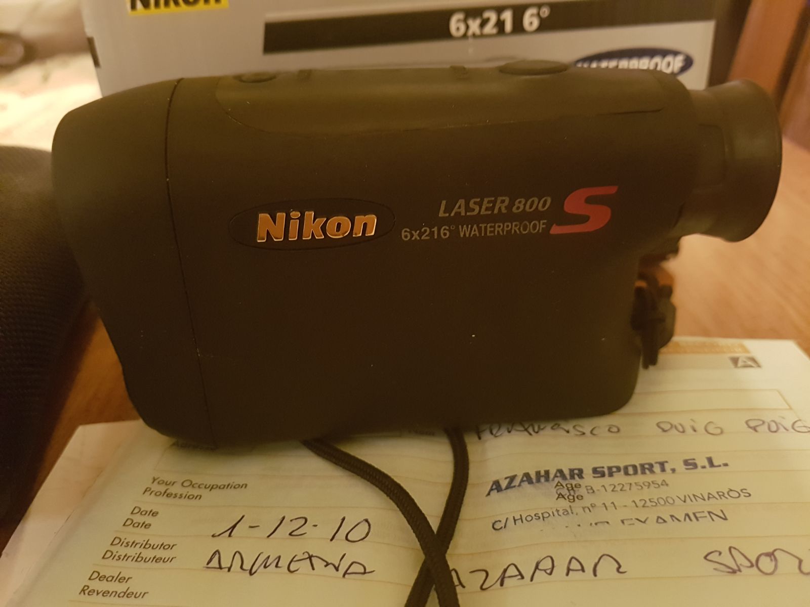Un amigo vende un telemetro Nikon modelo 800 S. Esta en perfecto estado ya que apenas lo ha usado. Tiene la caja original, la documentación y la factura de compra. Le costó 375€, lo vende en 200€.