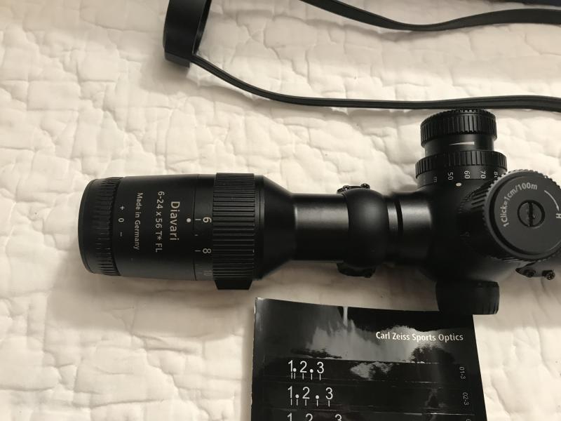 Vendo sensacional visor Zeiss.modelo Victory Fl con torreta Asv y retícula 60 iluminada.con montutas Blaser sin apenas uso .telf 656912907 2000€ Mando más fotos por wasap
